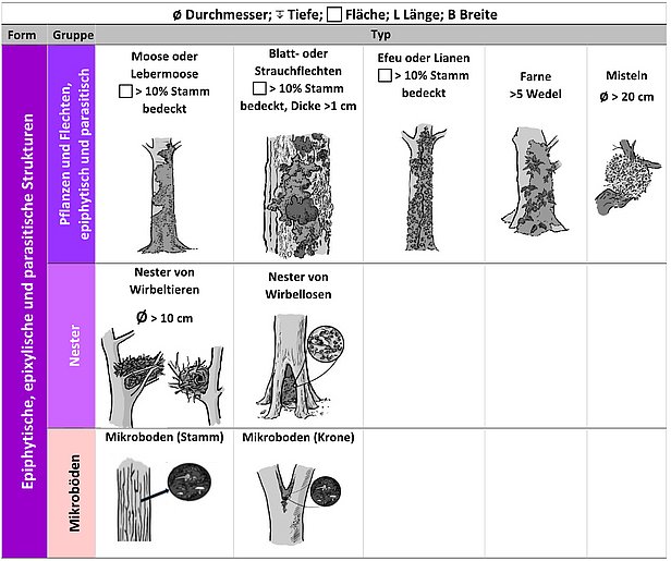 - Larrieu, L.; Paillet, Y.; Winter, S.; Bütler, R.; Kraus, D.; Krumm, F.; Lachat, T.; Michel, A.K.; Regnery, B.; Vanderkerkhove, K., 2018: Tree related microhabitats in temperate and Mediterranean European forests: a hierarchical typology for inventory standardization. Ecological Indicators, 84: 194-207.
